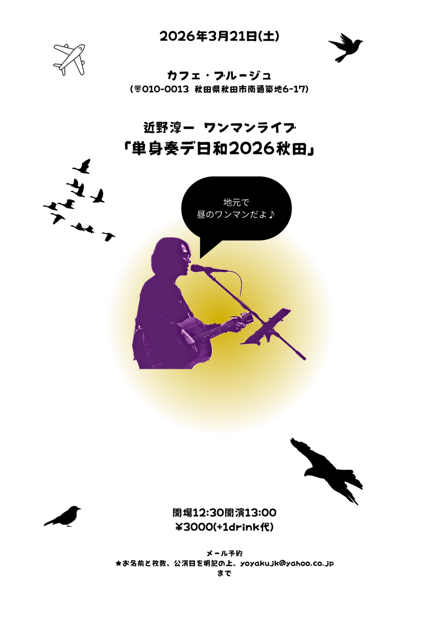 2026年3月21日(土)近野淳一ワンマンライブ